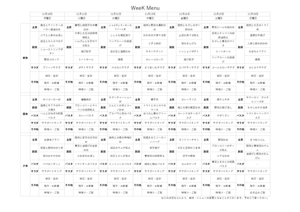 11/10-11/16 ↑料理メニューをクリックすると、別ファイルでご覧いただけます。 不定期の更新となります。これからもメニューや料理写真などご報告させていただきます。 . . . 先週の食事 11/4 鶏唐揚げ甘辛ダレ・胡瓜の中華和え・キムチビビンバ・明太クリームパスタ・サラダ・味噌汁